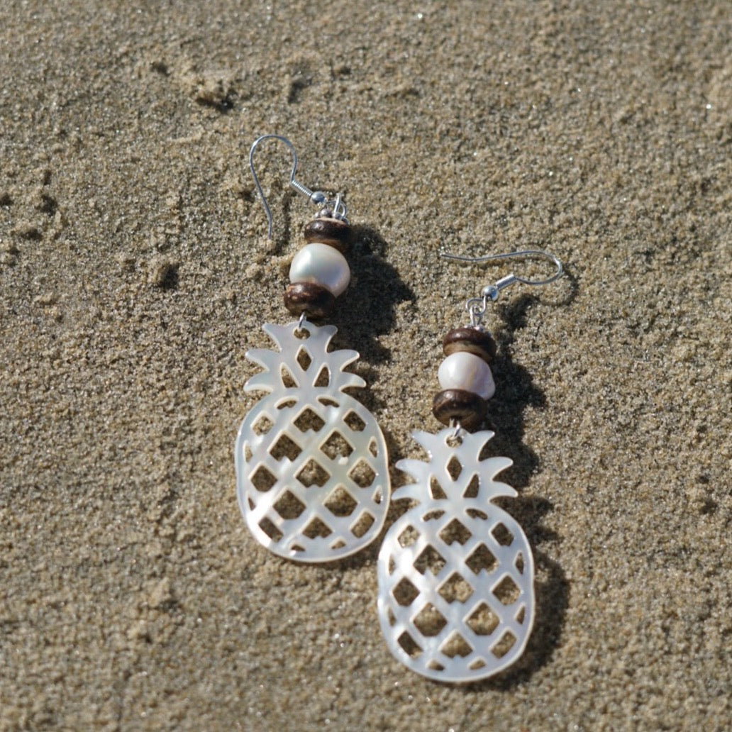 Cute MOP Pinapples beneath a freshwater pearl and two coconut shell beads! Can't get more tropical than that!!!