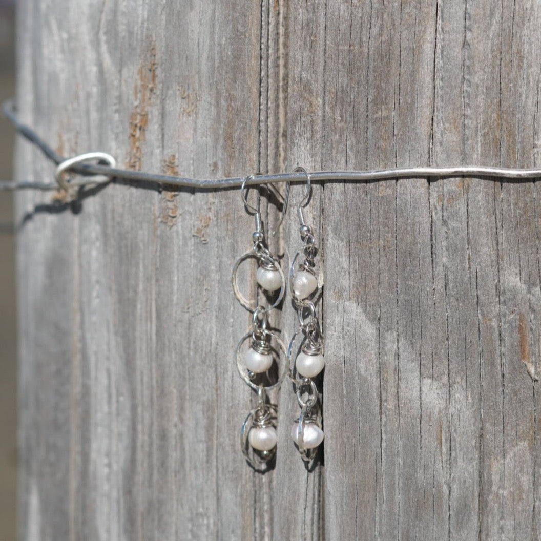 Three cute wire wrapped pearls dangling in a cute circle chain. Cute, beachy, and fun!