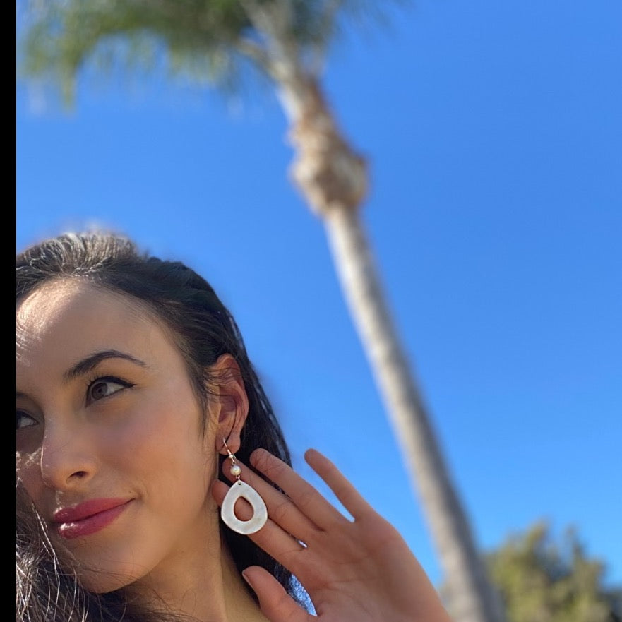 Super cute Motherof Pearl Open Teardrop shape with a freshwater pearl above. The perfect size -add just the right finishing touch!!