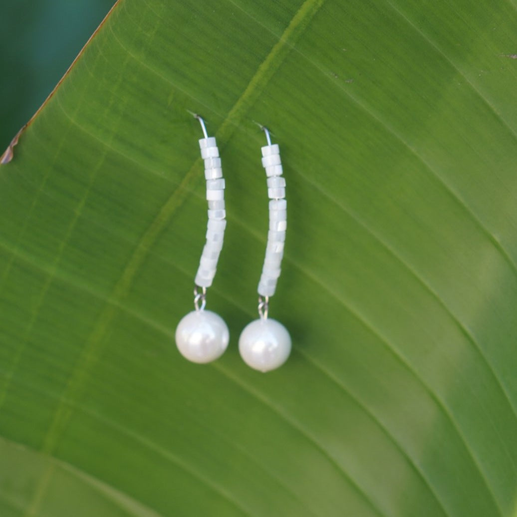 Super pretty mother of pearl beads with a big pearl style bead. So cool, and awesome style hooks. Pretty for the holidays.