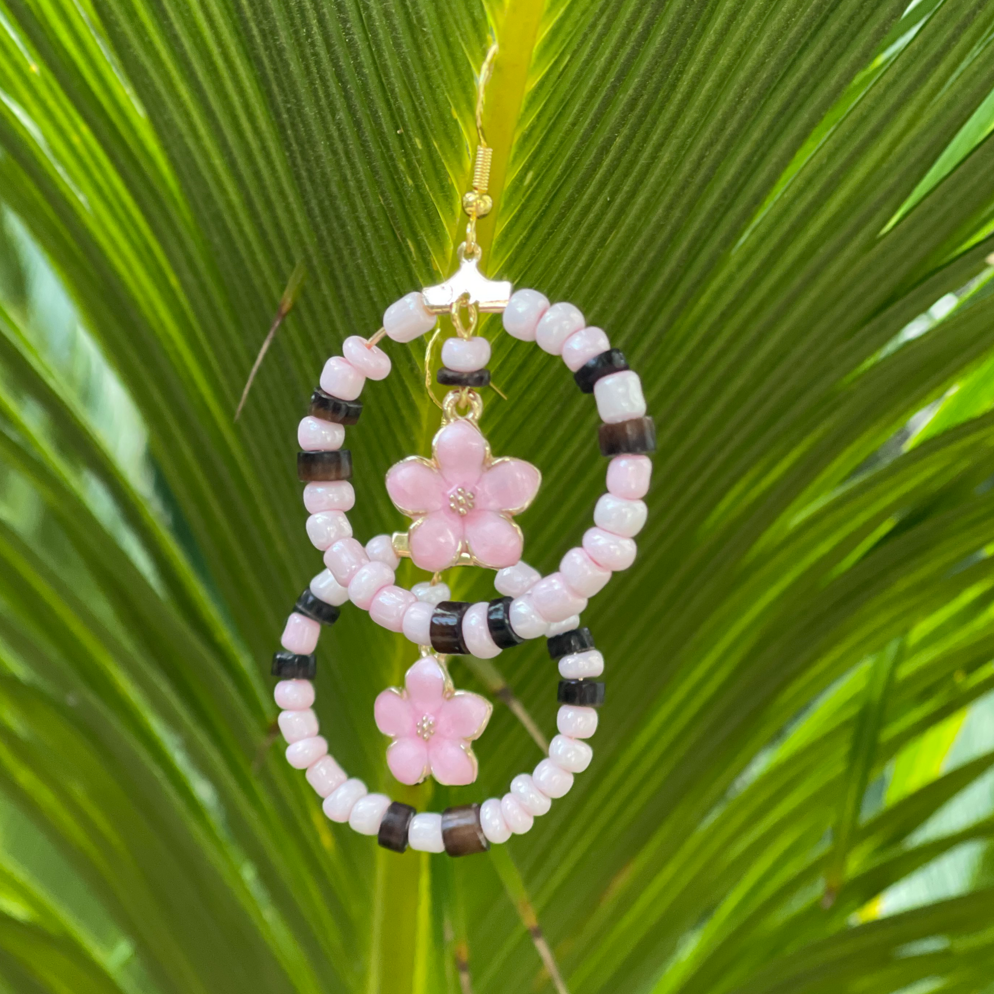 Another cutie from our "Hula Collection," these cute Hula Hoops have a cute enamel Hibiscus charm, hanging in the middle of a Pink beaded hoop, with coconut bead stripes. So cute with your summer fit!